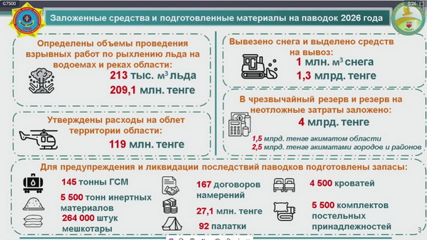 - Следует подготовить достаточные запасы ГСМ и инертных материалов, продовольствия, плавсредств, водооткачивающую и инженерную технику, - раскритиковал доклады Аксакалов. - Поэтому я сейчас не зря акимов спрашиваю – вот в тех отчётах, которые вы предоставили, там по три лодки на весь район?! Это недопустимо! Сотни должны быть, сотни! Всё это перепроверьте, накачайте, поставьте на баланс – и в случае необходимости сразу использовать. Сейчас уже определите места и объёмы взрывных работ. Необходимо провести разъяснительную работу с населением по очистке дворовых территорий от снега. Снег населению надо вывозить на улицу, а уже в дальнейшем вывоз обеспечат наши коммунальные службы. В сёлах, подверженных подтоплению, дислоцировать тяжёлую технику и мотопомпы, очистить от снега и мусора водосбросные канавы и водопропускные трубы.
