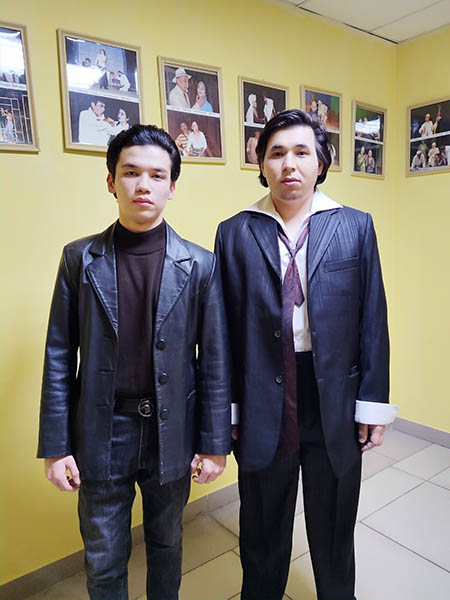 Бекасыл Сыйхынбай и Тыныбек Куралбай перед началом спектакля