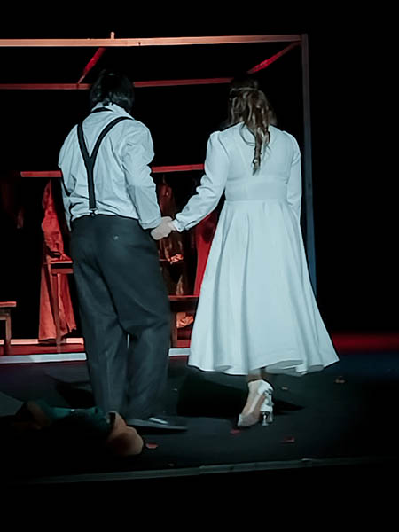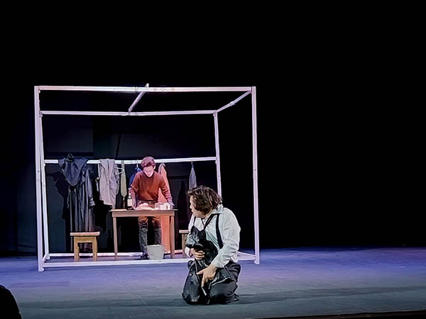 Спектакль прошел в настроении «вытри слезы», но в определенные минуты громкий смех наполнял зал. Например, в эпизоде, где собака решила накормить Батыра и в спешке пролила чай на стол, вытирая пролитое галстуком своего хозяина-друга. Или когда Шарик пытался укусить журналистку Сару, роль которой исполнила Аружан ЖОРАБЕКОВА. Собака гневно лаяла на девушку, в ответ последовал агрессивный женский «гав». И тут всплыло «Гавкает как собака» - выражение, которым характеризуют человека, эмоционально вступающего в конфликт. А потом смена - Сара мягкая, с внутренней силой, исполняет песню о любви. Батыр отпускает боль и прошлые воспоминания. Влюбляется в «лающую» девушку и забывает о дружбе с Шариком. Не просто забывает, а предает, не осознавая того, что у Сары свои корыстные цели на него. Собака все знает, но Батыр не желает слушать.