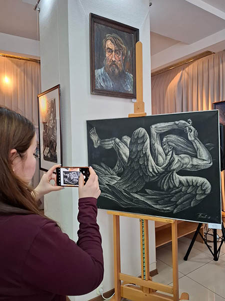Знакомимся. Оказалось, что на выставку пришла супруга еще одного известного костанайского художника Юрия Матюшко, тоже ушедшего. Соков высоко ценил художественные взгляды коллеги, очень помог с выпуском книги-альбома «Зазеркалье души» о творчестве Матюшко.