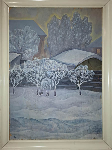 - А вот он и год, 1971-й, - произносит женщина рядом и на мой вопрос отвечает , - у нас дома есть работа Георгия Михайловича, не датированная, уже осыпаться кое-где начала, я немного подреставрировала ее. Теперь вижу по стилю, примерно какого она периода.
