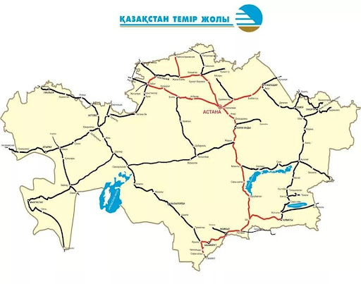 Как видно на карте АО «НК «Казахстан Темир Жолы», маршрут грузов от Китая до Каспийского моря - это не прямая, а ломаная линия, по сути сотканная из ответвлений Турксиба, Трансказахской и Оренбурго-Ташкентской магистралей и небольших участков самих этих магистралей. Иными словами, на сегодня не существует единой магистрали, которая шла бы по маршруту «Запад - Восток».