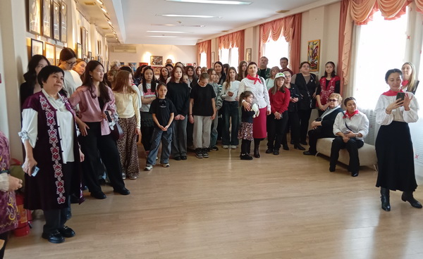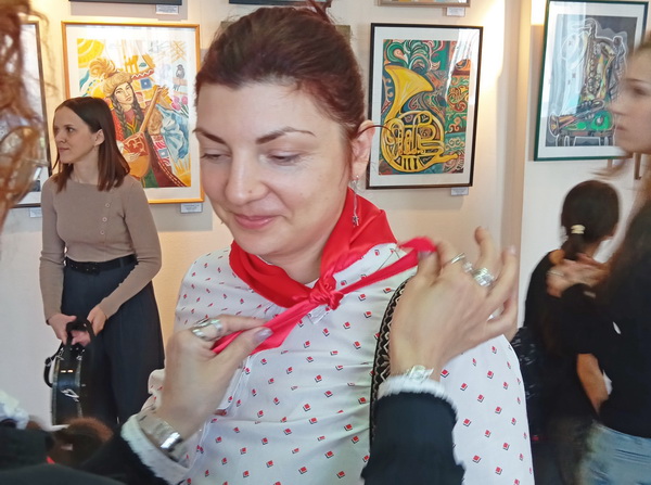 Эти позитивные художники, которым от 10 до 80+, весело и дружно вступили в Наурыз ошеломляющей выставкой под густой бас тромбона, чистую трель флейты и многоцветное меццо-сопрано скрипки… Вернисаж художественной школы им. Русина развернулся в картинной галерее.