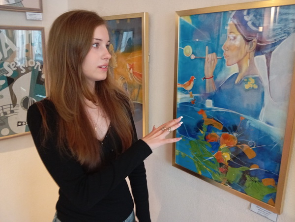 - Мы немного развили идею, - добавляет Галина Александровна, - и она переросла в более общий концепт нашей ежегодной выставки – музыка вообще. Отсюда и название – «Когда краски звучат». И если преподаватели дают подобное задание, они подвигают воспитанников к тому, чтобы их работы вызывали сообразный отклик своим композиционным и цветовым решением у всех, кто будет на них смотреть, у зрителей. Чтобы в голове словно бы звучали музыкальные мотивы, понимаете? Нежный пастельный тон – это лиричная мелодия, а яркие и сочные цвета – это уже живой ритм. Дети, которые представили свои работы, как бы приглашают зрителя на диалог.