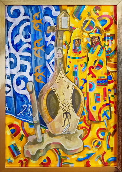 Полина Дычко (15 лет) - "Кобыз - наследие предков". Бумага, гуашь