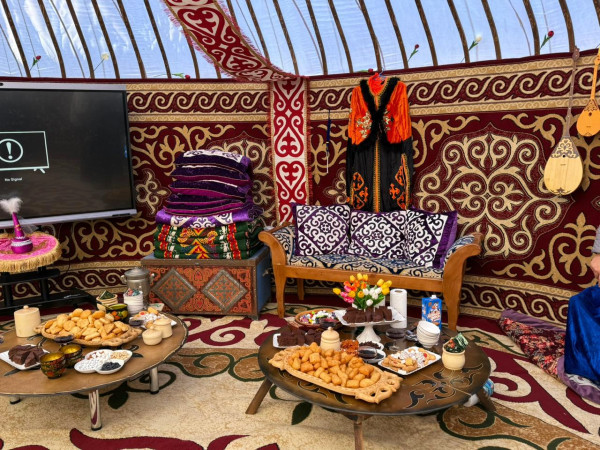 В юртах гостей встречали в национальных костюмах, угощали баурсаками, бешбармаком, фруктами и сладостями.