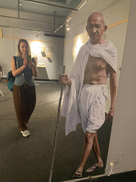 Побродив с полчаса по оживленной дороге, так и не попав к воротам, мы вдруг оказались на улочке, напротив которой возвышалась вывеска «Национальный музей Ганди». Это было вторым по силе моим удивлением. Ровно сутки назад мы обсуждали с мужем: как жаль, что в эту поездку нам не удастся посетить музей Махатмы Ганди. Но снова Индия как будто расставила приоритеты за нас.