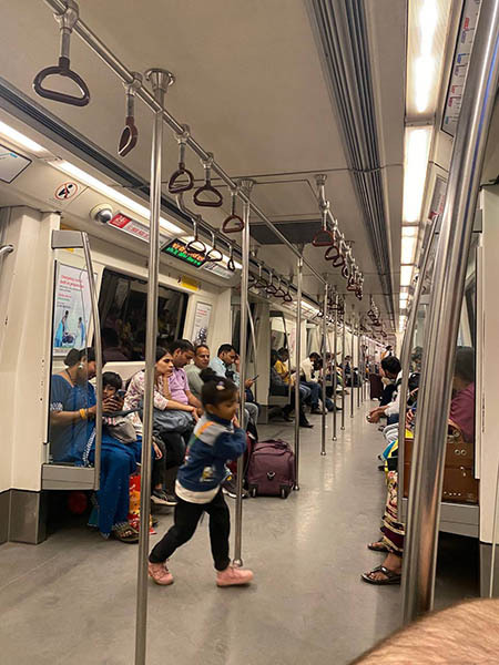Но по прилете выяснилось, что наша идея забронировать первый попавшийся отель через airnbnb была опрометчивой. Адрес, указанный в анкете отеля на сайте, оказался неверным. Мы спустились из аэропорта в метро, купили 2 билета до предполагаемой станции, где должен был находиться отель. Поездка из аэропорта до нашей станции обошлась в 200 рупий на двоих.