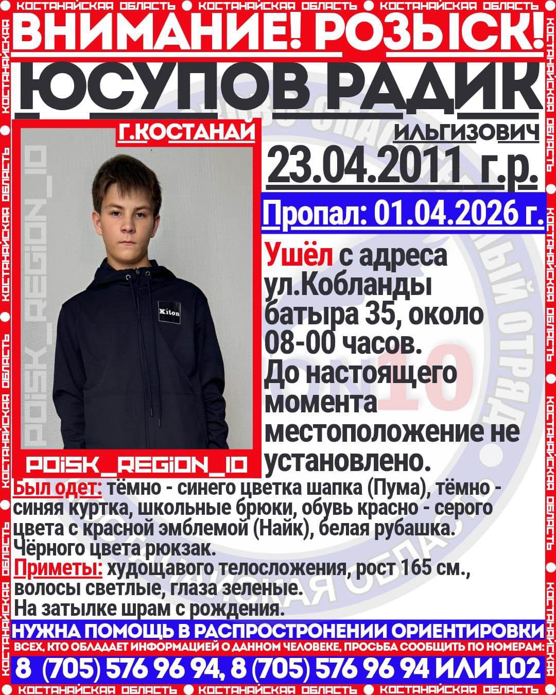 Девятиклассник Радик Юсупов из школы № 22 пропал вчера, 1 апреля. Как говорится в распространяемых сообщениях, 15-летний подросток ушел в школу, но домой так и не вернулся. Информацию о пропавшем мальчике редакции «НГ» подтвердили волонтеры поискового отряда "Регион 10".