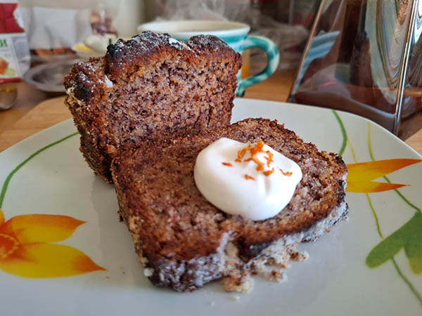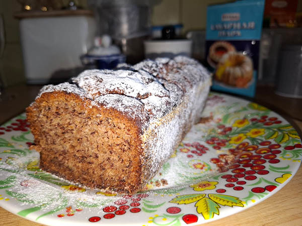 Если любите бананы, то это ваша выпечка. Когда готовишь в прямоугольной форме, то получается она реально похожей на буханочку хлеба. Я добавила в тесто набор специй «Для шарлотки», в котором есть корица и молотая гвоздика, хлеб получился темным, похожим на «Бородинский».