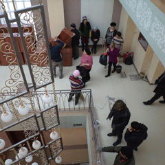 Первый же встретившийся рабочий с ходу определил: «Гороно? Прямо, налево и прямо, там найдешь». В коридорах завершением работ еще и не пахнет: стелят пол, варят трубы, врезают замки, шкурят стены. Пыль стеной. Группа из 20 женщин и нескольких мужчин на этом фоне явно выделяется: без спецовок, чистенькие, моют пол на втором этаже. Говорят, что руководит ими Евгений Терентьев, но его сейчас нет. Женщины оказались работниками гимназии, СШ №№ 13, 16 и 20, из музыкальной школы.