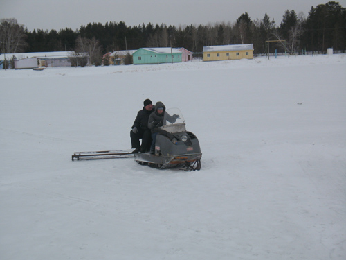 Через какое-то время он вновь увидел снежные клубы пыли, которые поднимал, двигаясь по замерзшему озеру, тот же снегоход. Он несся прямо на Андрея, но приближаясь к горке стал мало-помалу сбавлять скорость. И только тут наш участник разглядел, что сзади старенького «Бурана» прикреплена не навороченная очищающая штуковина, а обычная панцирная сетка от кровати!