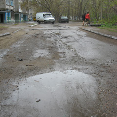 Как убедились корреспонденты «НГ», во двор новых домов по ул. Садовой невозможно подъехать ни с какой стороны - кругом ямы и грязь. В темное время суток, как пояснил Лим, в районе вообще опасно ходить, потому что улицы здесь не освещаются.