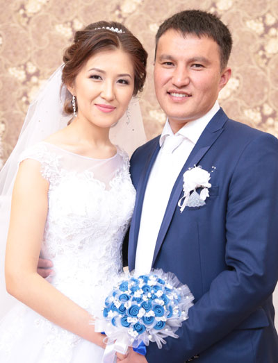 Прошлой осенью, после свадьбы друга, Ерболат с компанией поехал в ресторан, чтобы продолжить веселье. За соседним столиком несколько девушек отмечали день рождения. Ерболат подошел познакомиться и пригласил на медленный танец самую красивую. На следующий день они встретились уже только вдвоем. Начался красивый роман, парень научил девушку кататься на коньках и регулярно вызывал ее восторги букетами роз среди ночи. Недавно Ерболат и Гульмира сыграли свадьбу.