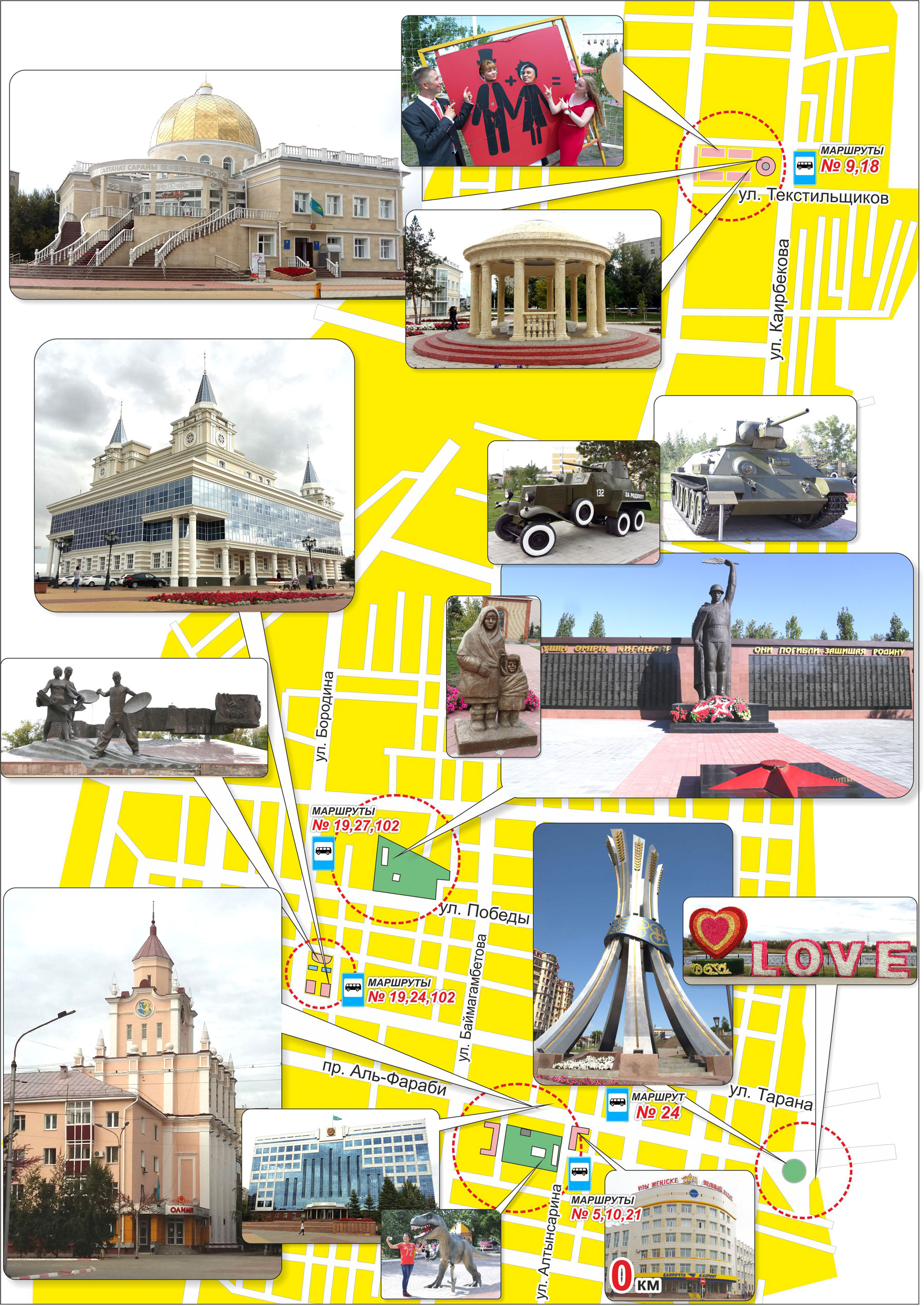 А мест, на фоне которых себя показать не стыдно, в Костанае много. И можно сколько угодно спорить об их архитектурной и художественной ценности, но факт остается фактом: не показать их гостям Костаная странно. А чтобы показывать было удобнее, мы составили для вас небольшой путеводитель.