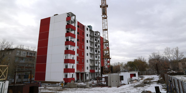 Этот 9-этажный дом строится из продукции домостроительного комбината
