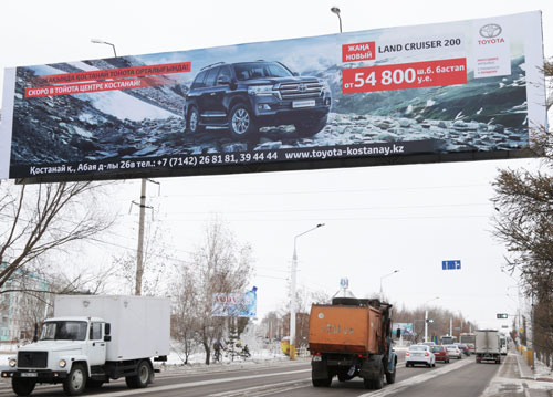 Баннеры с рекламой, в которой указаны цены в условных единицах, можно видеть и в Костанае, и в других населенных пунктах области
