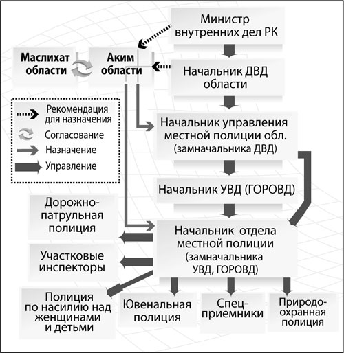 Дело в том, что и сейчас начальники региональных структур полиции хотя и назначаются по своей властной вертикали, но их кандидатуры предварительно оговариваются с акимами. К тому же подразделения, занимающиеся охраной общественного порядка, финансируются из местного бюджета. Проводятся и отчеты участковых инспекторов перед населением.