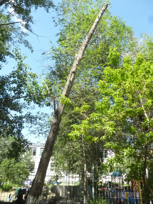 Соседний тополь потерял все ветви и наклонился в сторону детсада