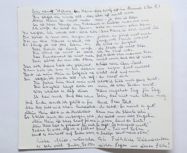 У нее много открыток из Германии было, с немецкими поздравлениями. На одной из открыток было напечатано поздравительное стихотворение. Мы стараемся ежегодно делать экспозиции праздничных открыток, игрушек. Люди с интересом приходят и смотрят выставки. Сейчас поздравительные открытки популярностью не пользуются. Конечно, люди старшего поколения с удовольствием рассматривают эти открытки, ностальгируют.