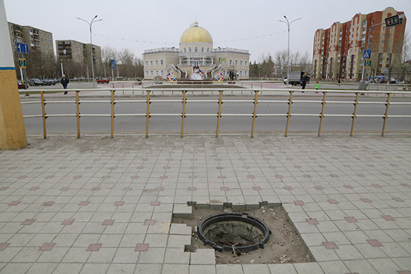 Корреспондент «НГ» побывал на указанном месте, на бульваре Жастар, через дорогу от Дворца бракосочетания, обнаружил открытый колодец. Глубина его - примерно 1,5 м. Внизу видны поломанная крышка люка и кабели — предположительно, светофорные. Похоже, что крышка колодца сломалась в результате наезда на нее тяжелой техники зимой, когда очищали дорогу от снега.