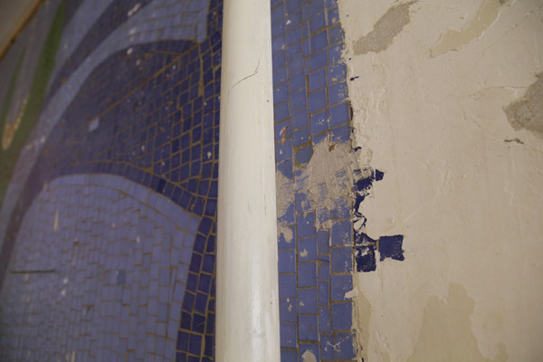 Панно сделано из более мелких кусочков смальты и сохранилось намного лучше, чем предыдущие, но тоже начинает разрушаться.