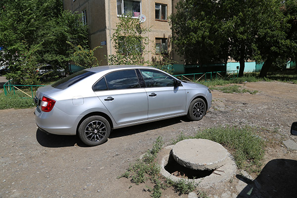 Микрорайон Западный. Колодец прикрыт плитой, которую сдвинули паркующиеся здесь машины