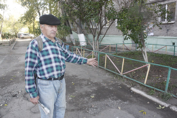 Место известное. Таксист, который вез корреспондента «НГ», сразу понял, куда нужно ехать: на Совхозную, где недоложили асфальт. Там граница между новым дорожным покрытием и старым щебнем видна отчетливо. Автора ролика найти не удалось, зато получилось поговорить с местным жителем - пенсионером Алексеем ДЕМЬЯНЕНКО. Раньше он работал строителем и знает, о чем говорит.