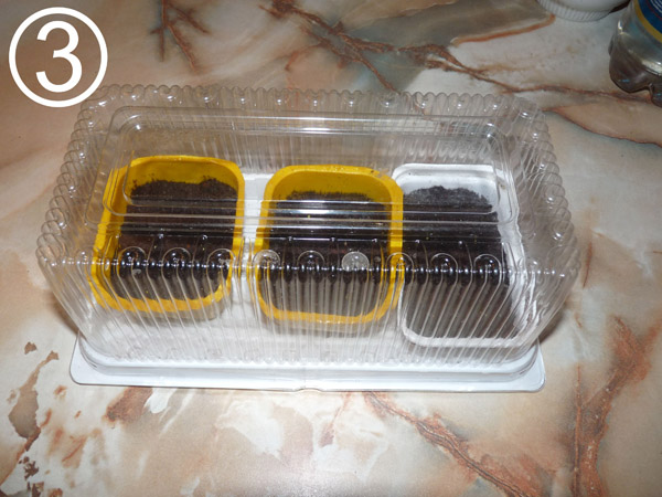 В обоих случаях сверху еще раз спрысните распылителем, чтобы гранулы с семенами начали растворяться и несколько заглубились в грунт. После этого накройте контейнер пленкой, стеклом или крышкой контейнера, чтобы поддерживать внутри влажность, которая предотвратит цементирование ростка оболочкой гранулы.