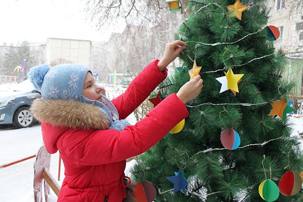 - Одну из елок в этом году решили украсить полностью игрушками, которые дети делали сами, - рассказывает Евгений. - Купили разноцветный картон, подсмотрели в Интернете объемные шары и звезды, а дочка с подружками их склеили. Так же сделали и цепочки, наши старые советские, из детства... Ведь главное - это не только новогоднее настроение в наших темных и пустынных дворах, но и наши добрые традиции, которые, несмотря ни на что, надо поддерживать и передавать детям, даже в нынешних условиях. Жизнь продолжается!