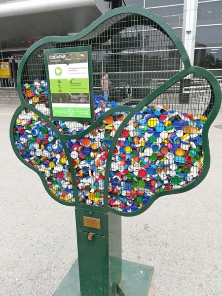 Одно из проявлений экологического движений пару раз встретилось на улицах Тюмени. Это стилизованные под дерево контейнеры для сбора пластиковых крышек. Как написано на табличке, 8 кг сданных крышек обеспечат покупку семян, выращивание и высадку на территории города одного дерева. Идея отличная! И мусора меньше, и город озеленяется.