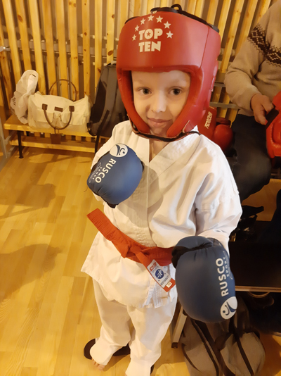 Уже почти год тренируется в спортивном клубе «Жас Улан» под руководством Юрия Щура. За этот период мальчик успел поучаствовать во многих турнирах по рукопашному бою и NOMAD MMA и занять на них призовые места.